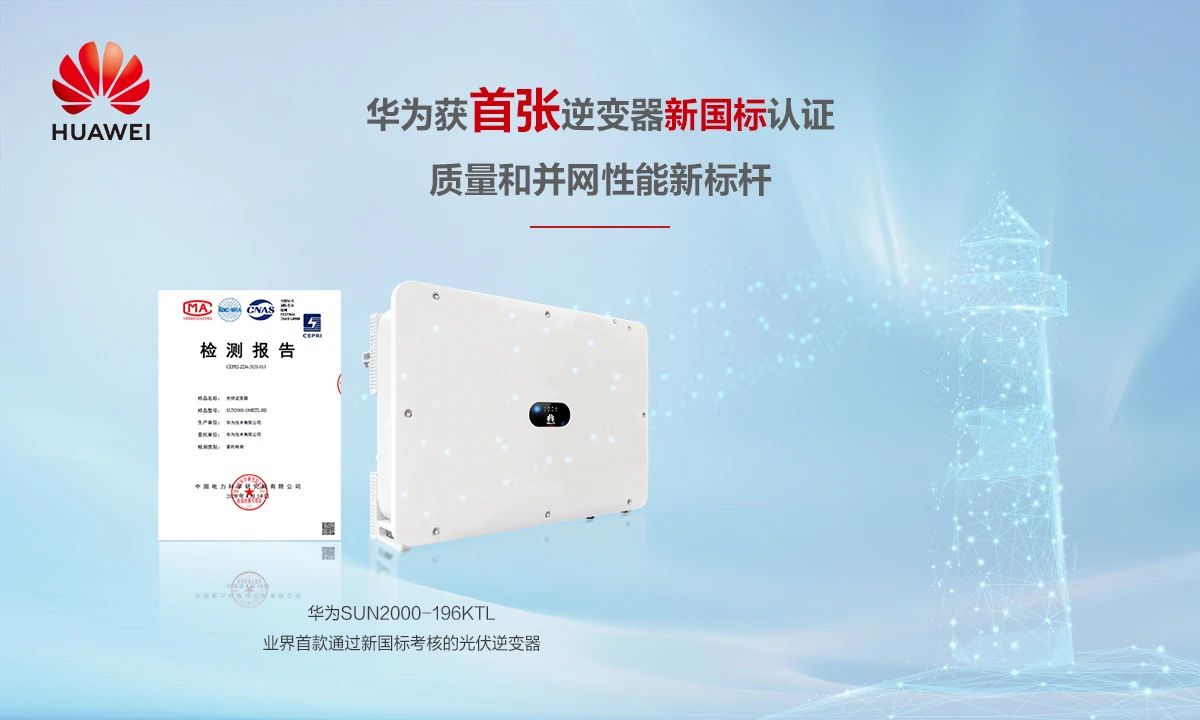 2020年4月16日,中國電科院南京分院向華為頒發(fā)逆變器新國標(biāo)認(rèn)證證書,這是自2019年國內(nèi)正式執(zhí)行新國標(biāo)(GB/T 37408 《光伏發(fā)電站并網(wǎng)逆變器技術(shù)要求》)實施檢測認(rèn)證以來的首次頒證。華為SUN2000-196KTL機(jī)型成為行業(yè)內(nèi)首款通過新國標(biāo)考核的光伏逆變器,擔(dān)綱業(yè)界逆變器質(zhì)量和并網(wǎng)性能技術(shù)新標(biāo)桿。