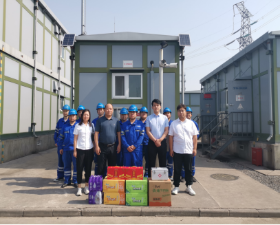 炎炎夏日,高溫酷暑。為確保高溫季節(jié)廣大一線職工的身體健康,6月16日上午,公司領(lǐng)導(dǎo)班子成員對公司鄧莊變電站和傅莊變電站職工進(jìn)行了親切的慰問,并為他們送上防暑降溫慰問品,讓堅(jiān)守在高溫一線的職工們實(shí)實(shí)在在感受到公司及工會的關(guān)愛。